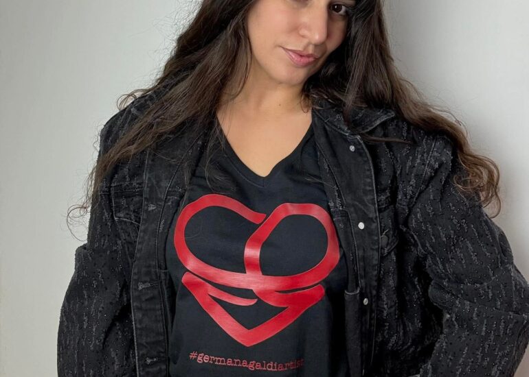 Quando le arti si incontrano: la virtuosa chitarrista Maria Barbieri che ha indossato la mia t-shirt