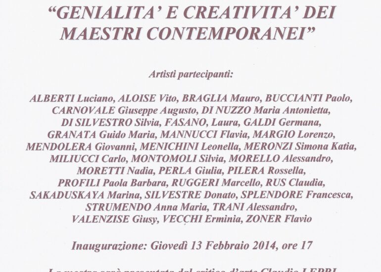 Rassegna d’Arte “Genialità e creatività dei maestri contemporanei” 2014 – Galleria “Il leone” Critico Claudio Lepri